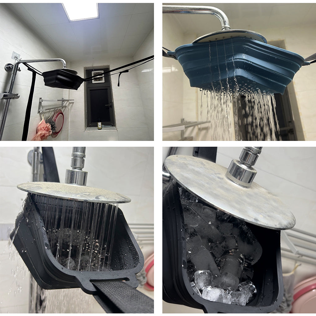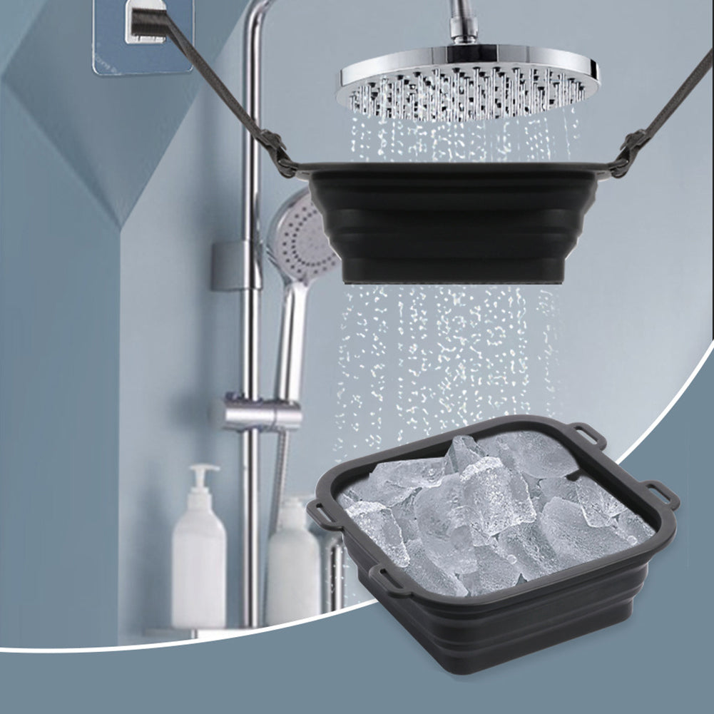 השימוש במתקן מקלחת קרח מתקפל פשוט ומהיר: ממלאים את הכלי בכמות קטנה של קוביות קרח, תולים אותו בקלות בעזרת הרצועות האלסטיות על המתלים הייעודים ופותחים את זרם המים. המים עוברים דרך הקרח ומתקררים מיד – ותוך פחות מדקה כל מקלחת רגילה הופכת לטיפול קר מרענן.